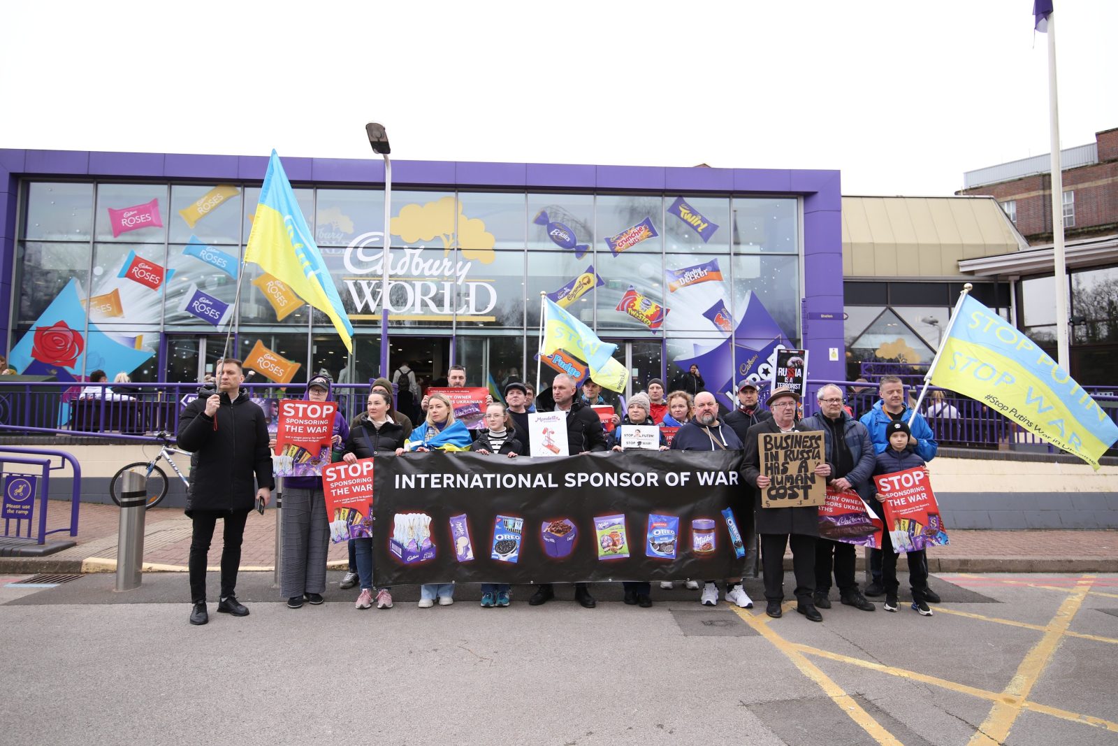 The demonstration outside Cadbury World on Saturday, March 16th, was a powerful expression of solidarity with Ukraine and a condemnation of Mondelez International’s support for the Russian government amid the ongoing conflict in Ukraine.